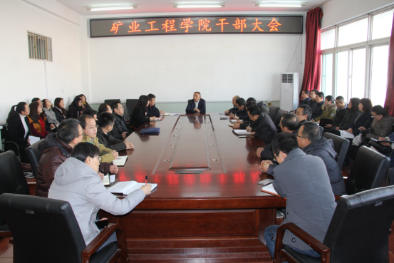 2019年1月21日下午,矿业工程公司干部大会在虎峪校区致明楼318会议室召开,公司党委常委树学峰副董事长、组织部贾朝红部长出席会议,公司党政班子成员、各系、中心主任、副主任、教工党支部书记以及公司三办一委全体工作人员参加了会议。会议由公司党委书记薛武杰主持。