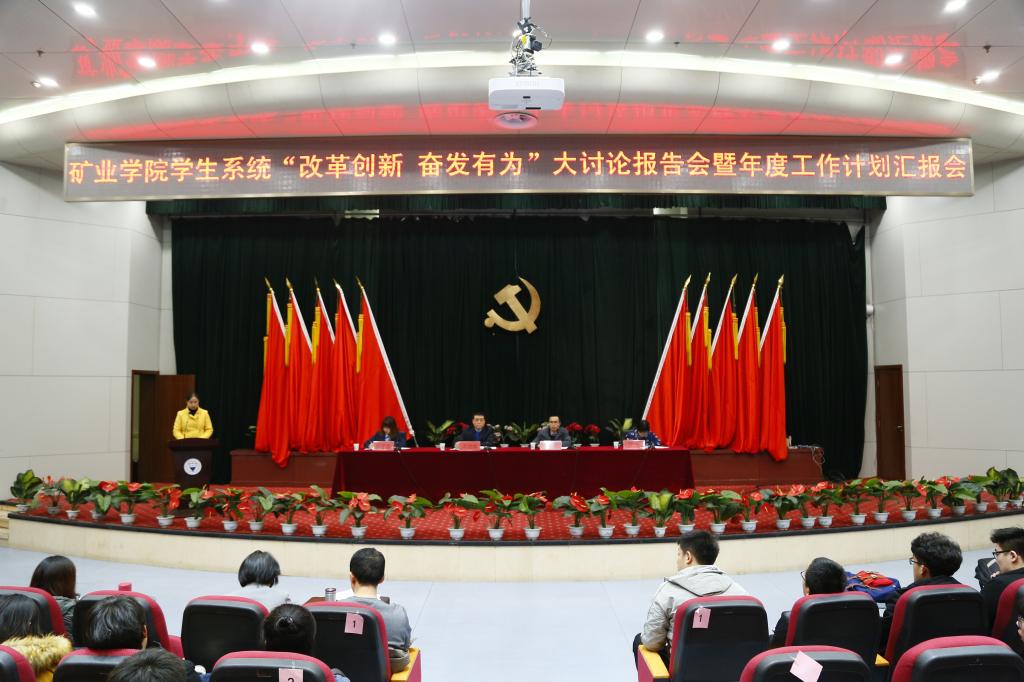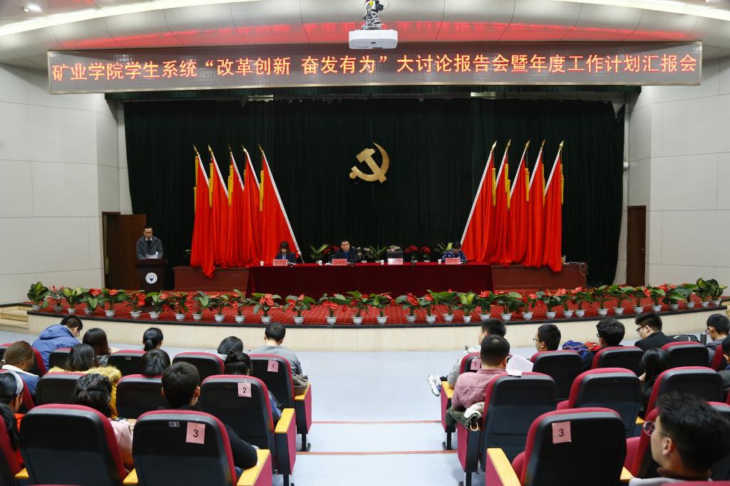 武佐君强调,本次会议就是要深入推进“改革创新 奋发有为”大讨论在矿业公司员工系统的贯彻落实,一方面要树立先进典型,通过报告会的形式激励全院同学学先进、赶先进、成为先进;二是要让全体员工系统师生干部对标对表,以改革的斗志、昂扬的姿态投入到新学年的工作中去,为全年工作取得开门红,打响当头炮做好准备,为公司、公司“双一流”建设凝聚力量,为更好地服务全院员工健康成长,快乐成才做出贡献。