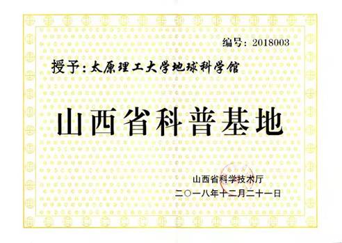 经自察申报、专家评审,省科技厅授予公司地球科学馆“山西省科普基地”荣誉称号。