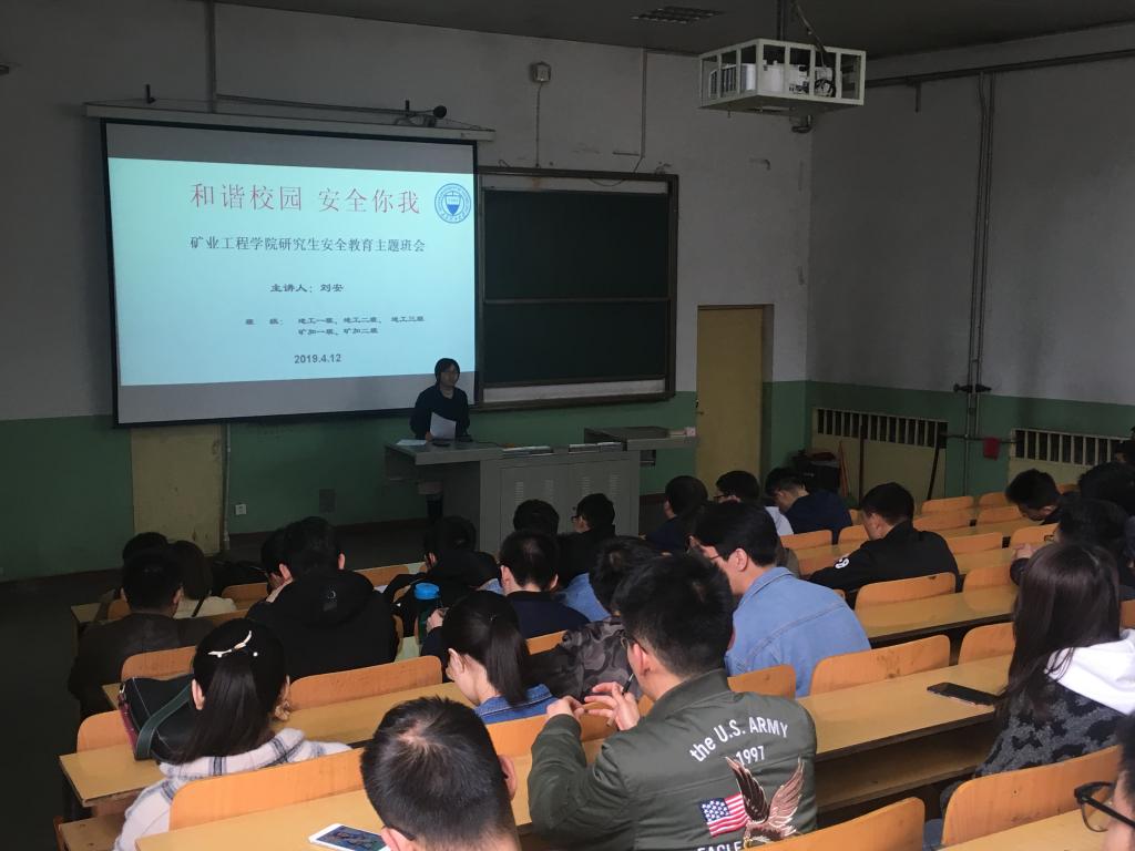 经过前期摸排工作,在准确掌握研究生同学实际情况的基础上,4月11日中午12:30,球友会在虎峪校区M2和M3教室分别召开了地质测绘专业、采矿专业全体研究生安全教育主题班会,并于12日中午12:30在M2教室召开了矿加、机电、地工专业研究生安全教育主题班会。球友会研究生辅导员及全体研究生参加了会议。
