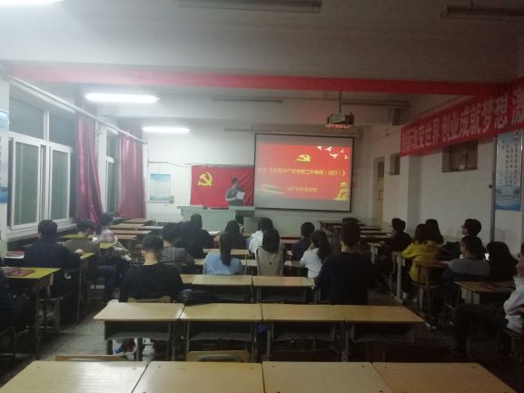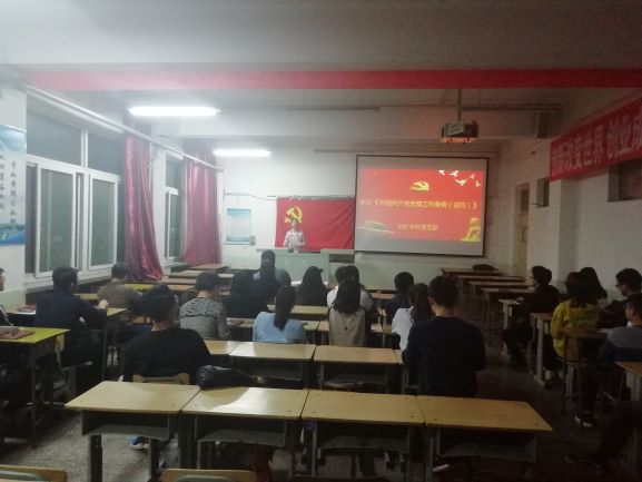 2019年4月22日,地矿本科党支部在致明楼404召开“学习《中国共产党支部工作条例(试行)》会议”。地矿本科党支部全体党员参加了会议,会议由党支部书记武文婷主持。