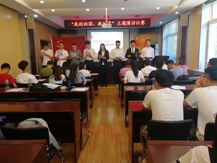 2019年7月1日,为庆祝建党98周年暨喜迎新中国成立70周年,球友会在采矿楼二层会议室举行“我的祖国、我的党”主题演讲比赛。党委书记薛武杰、党委副书记武佐君、团委书记张丁香、团委副书记刘安、本科生党支部书记洪俊、武文婷、贺雨濛、石婷出席了本次活动并担任评委。