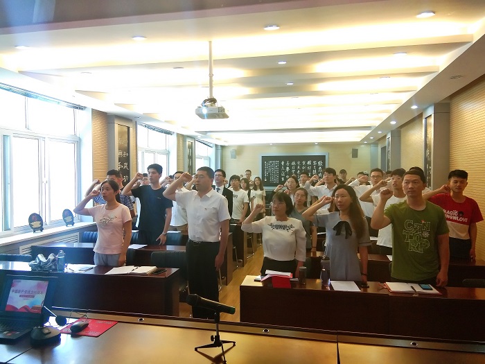 最后,武佐君书记带领大家进行了新党员入党宣誓、老党员重温入党誓词。