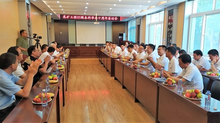 7月5日下午,采矿2009届员工毕业十周年回归母校茶话会在采矿楼二楼会议室召开。公司原党委书记姚极,院党委书记薛武杰,原经理现校科研院经理冯国瑞,高数老师、校督导组组长张洪斌,公司党委副书记武佐君、副经理王俊峰,采矿系原主任张东峰,系主任王开、系党支部书记李建忠、教师丰建荣,班主任田韶华等领导老师,以及来自全国各地的70位采矿2009届员工,参加了此次茶话会,共同纪念2009届采矿专业本科生毕业十周年。