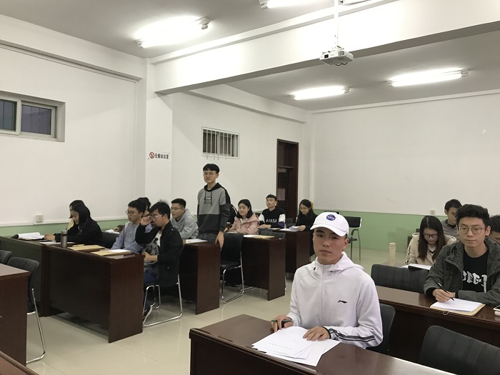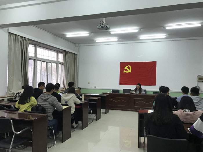 2019年10月26日下午,地科本科党支部在虎峪校区致明楼208进行接收预备党员支部会议暨 “不忘初心、牢记使命”专题党课。地科本科党支部全体党员参加了会议,会议由党支部书记贺雨濛主持。