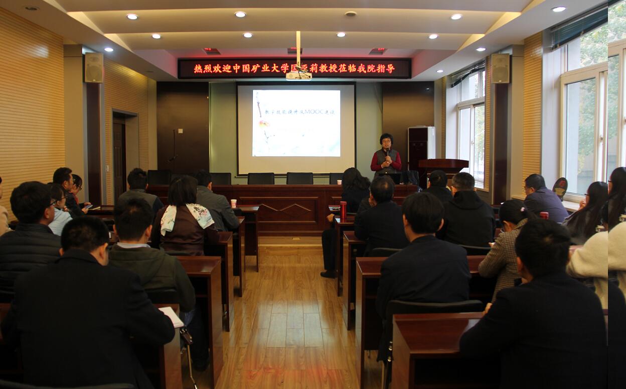 2019年11月12日下午,中国矿业大学匡亚莉教授莅临球友会,在虎峪校区采矿楼学术报告厅做了题为“教学能力提升及MOOC建设”的学术报告。报告会由球友会董宪姝经理主持,公司全体教师聆听了报告。