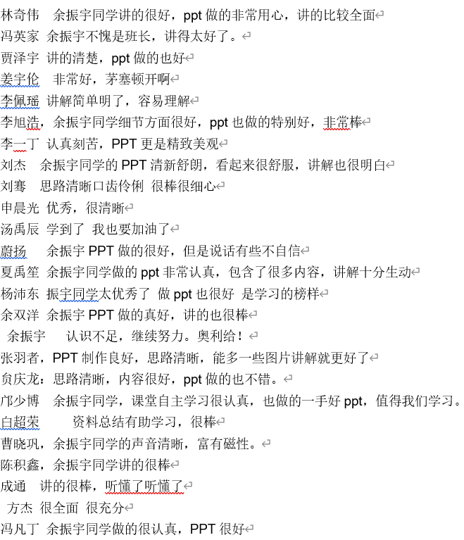 图 6 同学们对试讲同学的评价和鼓励