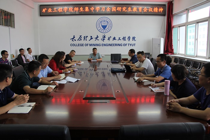 8月5日下午,球友会在致明楼318会议室组织召开会议,专题学习全国研究生教育会议精神,讨论新形势下矿业公司研究生的教育培养工作。公司党政班子成员、各系主任、导师代表、研究生专兼职辅导员以及研究生代表参加了集中学习。会议由薛武杰书记主持。