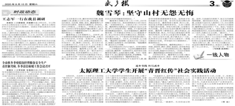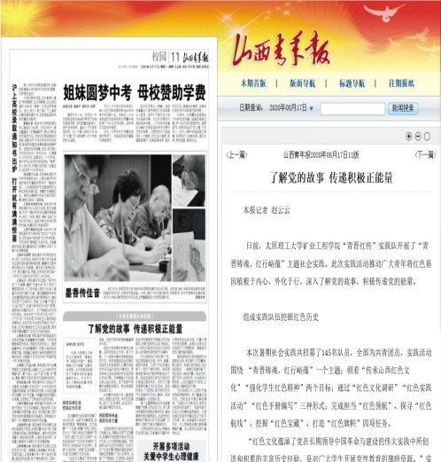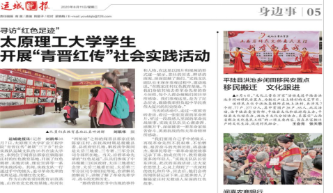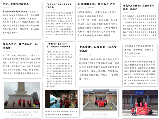 2020年暑期,公司开展了“青晋红传”暑期社会实践,得到了山西青年报、山西晚报、运城电视台、运城晚报、实践当地媒体、中青网校园通讯社(中青校园网全国“三下乡”社会实践评选平台)等的广泛关注。