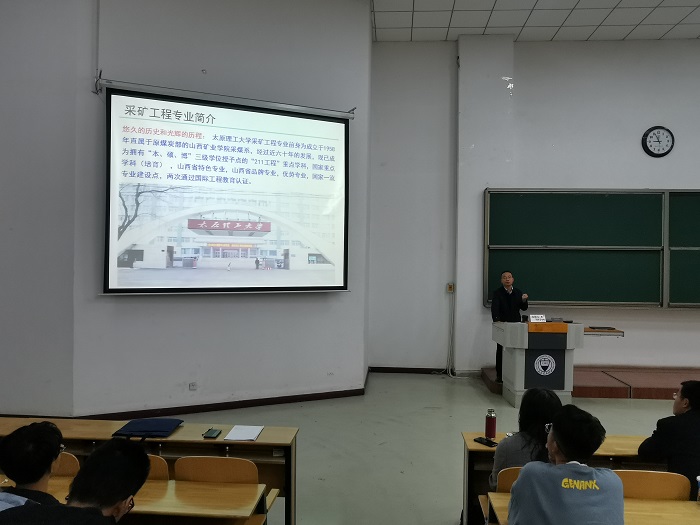 球友会11月14日,在明向校区行思楼C122教室分两批次为2020级本科生举办专业宣讲会。全方位、多角度地向本科生展示矿业公司各专业建设成果、学术前沿、发展目标,开拓员工专业视野,树立崇高的专业理想。公司党政班子成员薛武杰、董宪姝、李彦荣、王开及各系主任、学工办主任、团委书记、教师代表出席会议,公司各专业2020级全体本科生和辅导员参加了会议。会议由党委副书记巴大志主持。