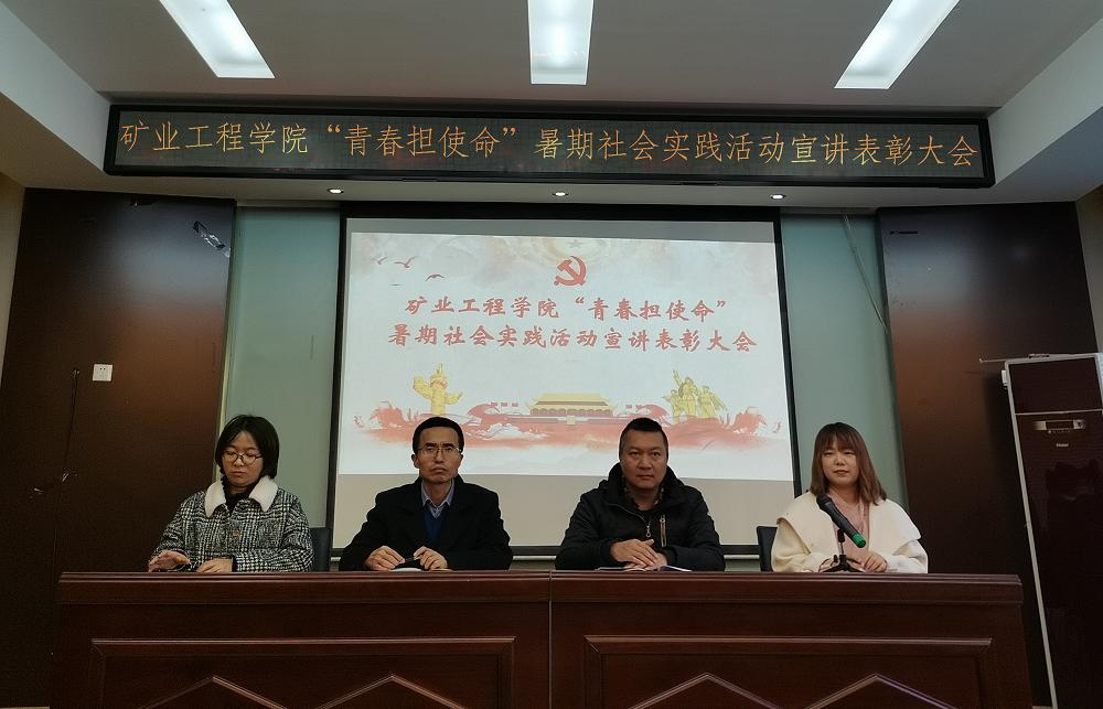 11月19日,球友会“青春担使命”暑期社会实践活动宣讲表彰大会在采矿楼二层会议室举行。公司党委副书记巴大志、学工办主任刘宏伟、团委书记张丁香、团委副书记刘安出席。各实践队队员代表及2019级团支书参加了本次大会。