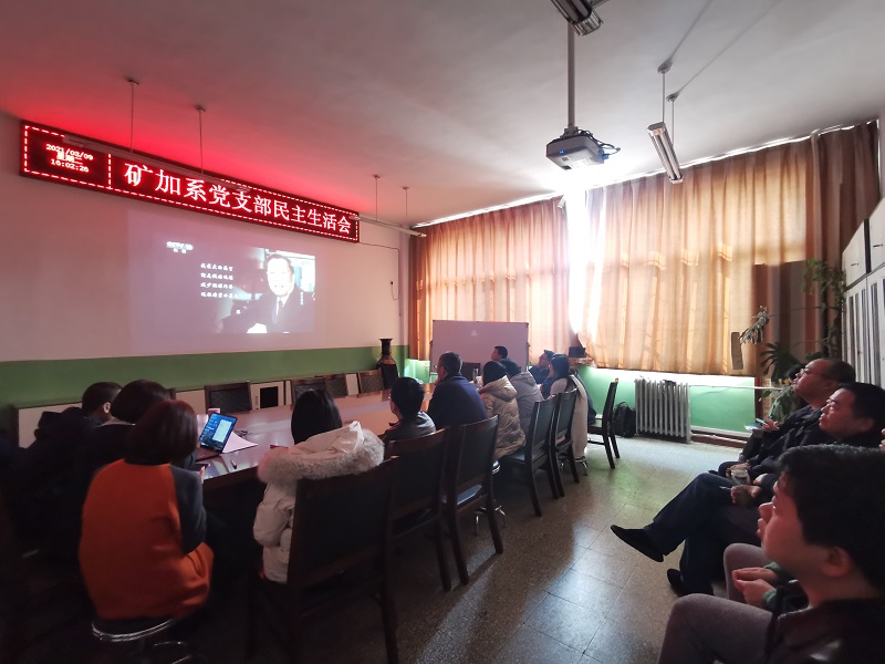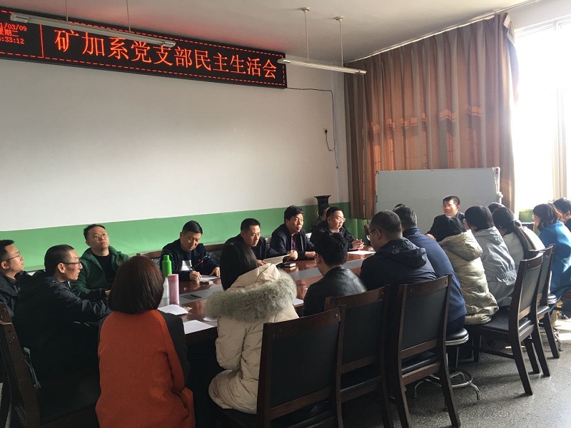 根据公司党组[2021]9号《关于召开2020年度组织生活会和开展民主评议党员的通知》精神及公司党委有关事项安排,矿物加工系党支部于2021年3月9号下午14:30,在虎峪校区地学楼213会议室召开主题为“牢记嘱托强信念、实干担当蹚新路”的组织生活会。会议由董连平书记主持,支部全体党员参加,公司党委委员宋选民老师和矿加系主任刘生玉老师受邀参加会议。