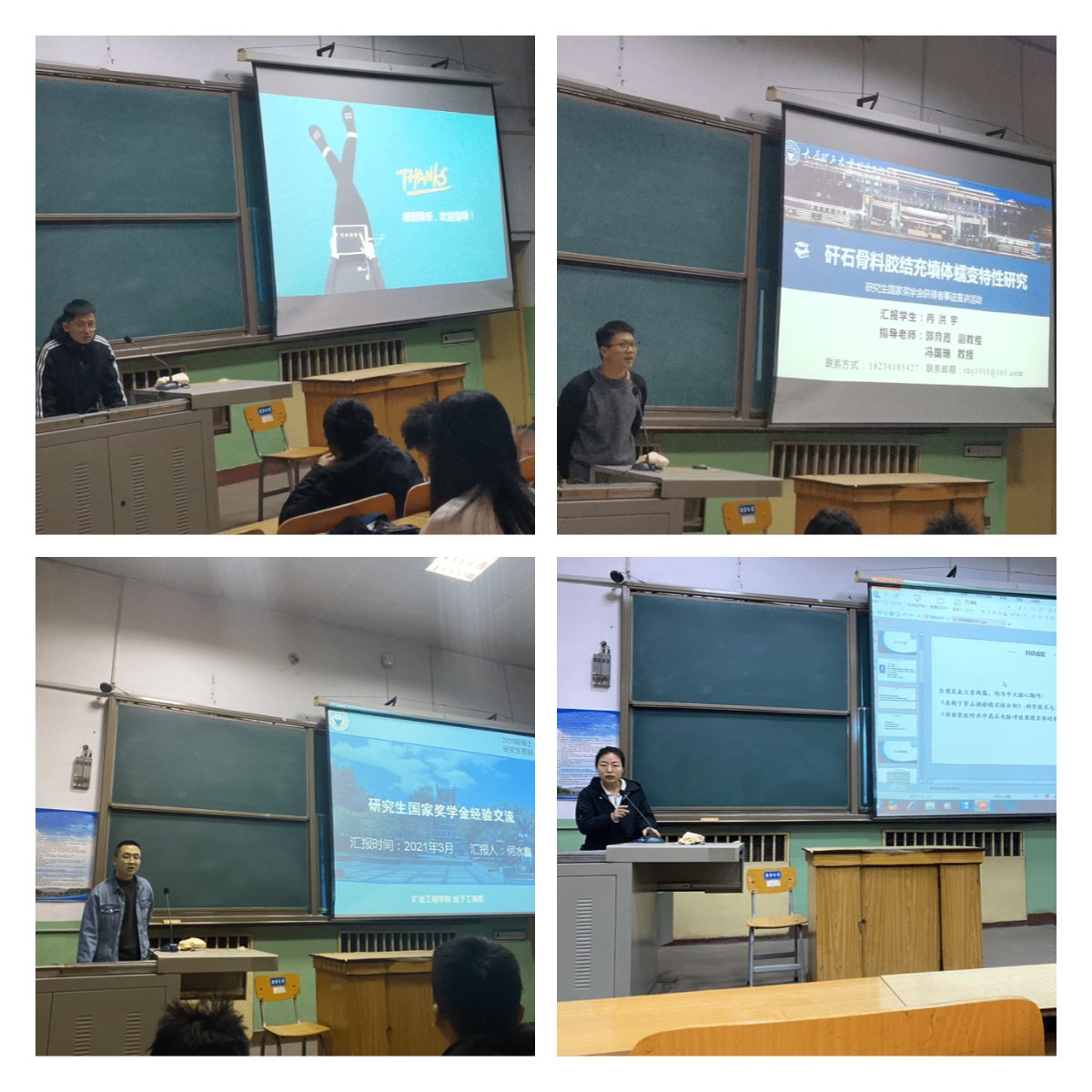 2021年3月24日至26日,球友会2020年研究生国家奖学金获得者事迹宣讲会在梅花教室M1举行。国家奖学金获得者研究生何永鑫、李海琪、冉洪宇、刘一扬、马新世、刘国方、李春明、张纯旺、李晓雪向全院师生依次进行了三场宣讲,五百余名相关学科员工参加了报告会。