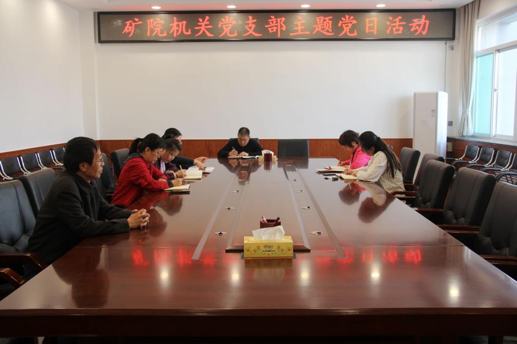 2021年4月30日上午,矿院机关党支部举办主题党日活动。活动由支部书记郝书平主持。机关党支部全体成员集中观看影视《建党伟业》。