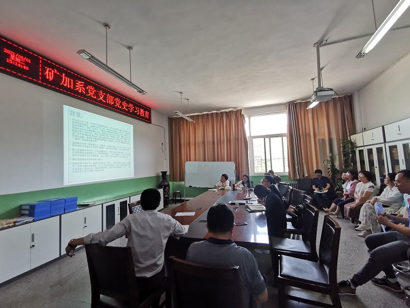 2021年6月1日下午2:30,矿加系党支部在地学楼213会议室开展第四次党史学习教育。