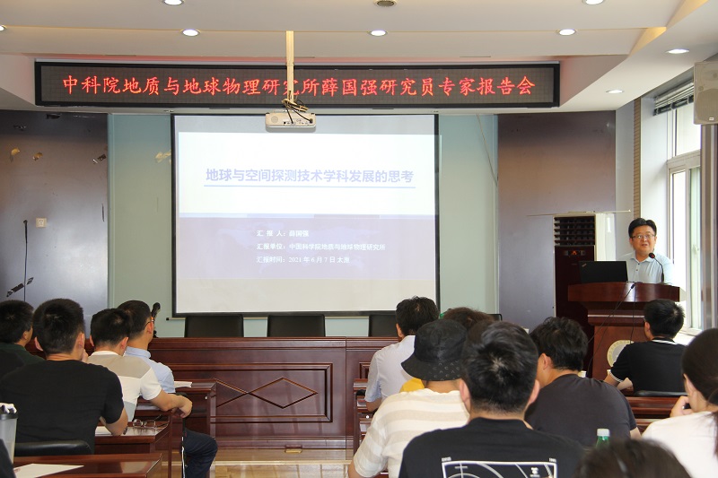 6月7日,中科院地质与地球物理研究所薛国强研究员应邀在公司虎峪校区二层会议室作了题为《地球与空间探测技术学科发展的思考》的学术报告,球友会相关学科的师生代表100余人聆听了此次报告会,报告由球友会副经理李彦荣主持。