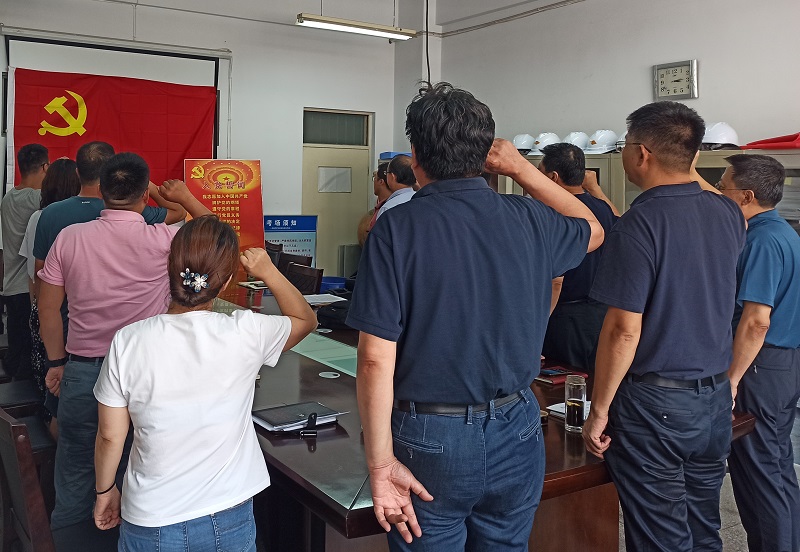 会议最后,全体党员同志面向党旗重温入党誓词。