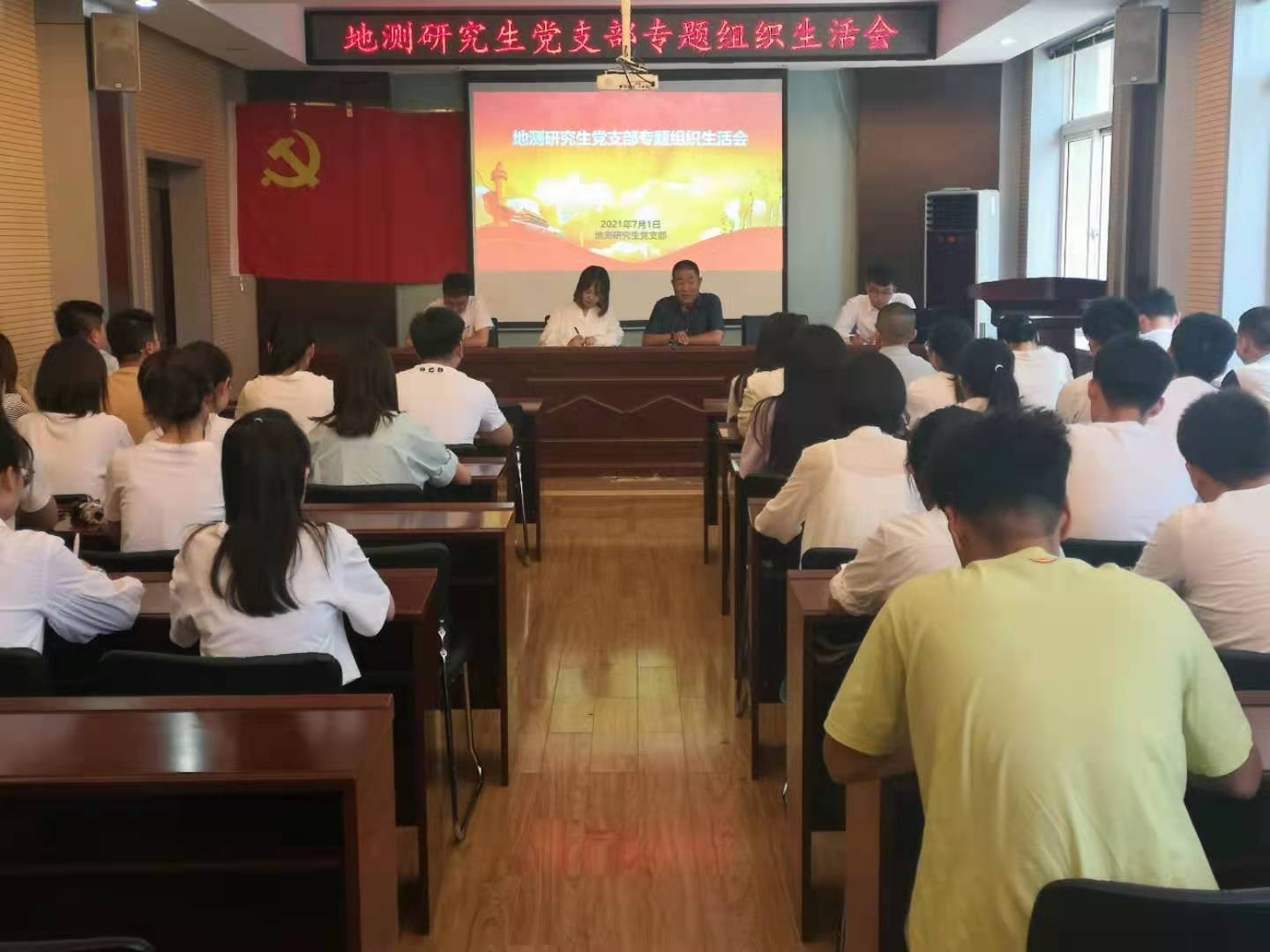 2021年7月1日下午15:00,地测研究生党支部在采矿楼二层会议室召开了专题组织生活会,联系领导公司党委书记薛武杰以及支部全体党员参加了会议。会议由党支部书记张丁香老师主持。