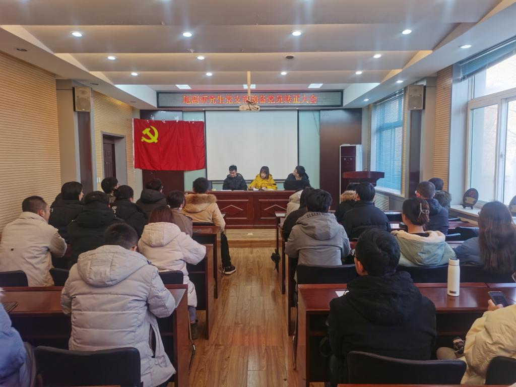 2021年12月28日上午,地测研究生党支部在采矿楼二层会议室召开预备党员转正大会,支部全体党员参加了会议,会议应到有表决权的正式党员53人,实到39人,会议由党支部书记张丁香老师主持。