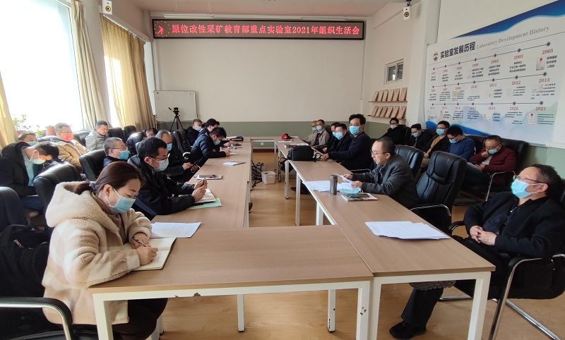 2022年3月7日下午在虎峪校区致明楼一层会议室,原位改性采矿党支部召开2021年度组织生活会,进行了党员民主评议。原位改性采矿教育部重点实验室全体教师参加,会议由党支部书记杨栋主持。