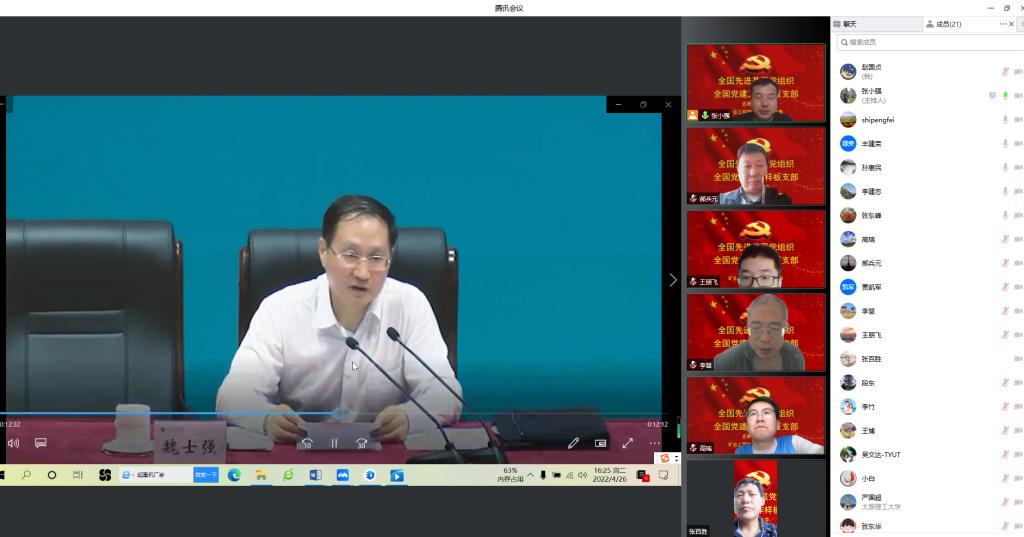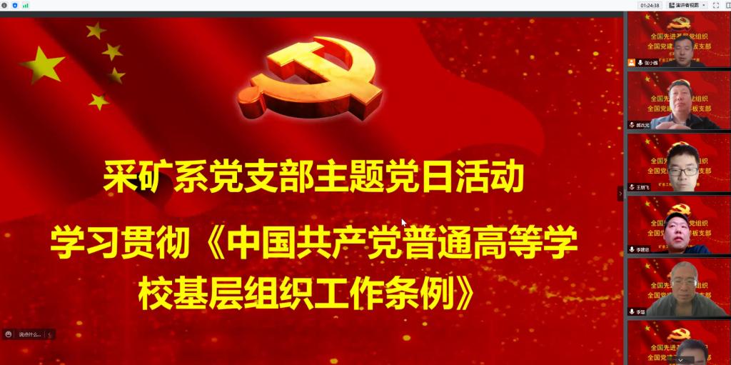 2022年4月25日下午,采矿系党支部利用腾讯会议开展主题党日活动,线上组织全体党员集中学习了《中国共产党普通高校基层组织工作条例》,会议由支部书记张小强主持。