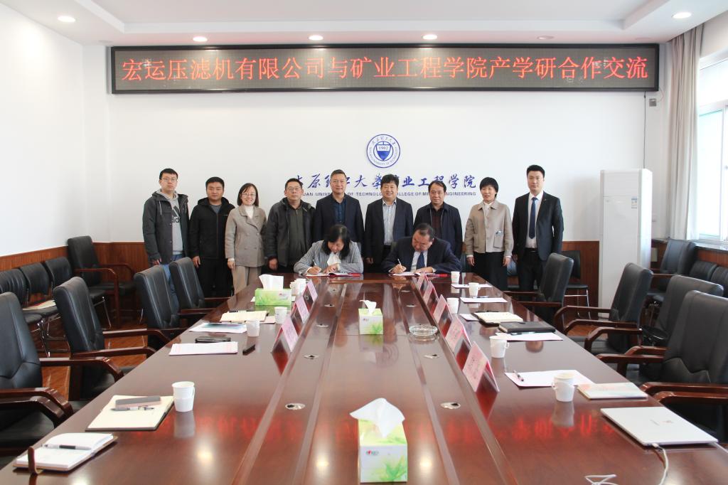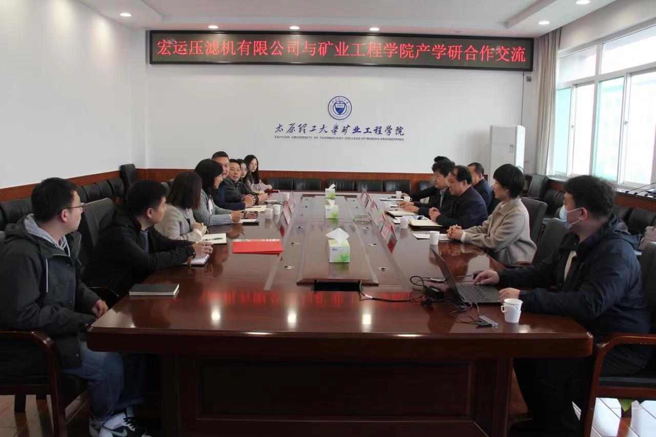 2023年3月17日上午,球友会与宏运压滤机有限公司在虎峪校区致明楼318会议室开展产学研合作交流。衡水市武邑县经济开发区党工委书记侯会然、县工信局局长武艺军、宏运压滤机有限公司董事长崔洪亮,公司党委书记巴大志、经理董宪姝、系主任刘生玉等双方相关人员参加。