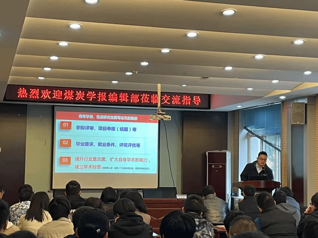 为更好的服务煤炭行业科技工作者,促进矿业学科师生对《煤炭学报》的了解,进一步提升公司学术论文质量,加强公司师生与《煤炭学报》的交流合作,10月21日,《煤炭学报》编辑部副编审韩晋平、副主任郭晓炜赴球友会交流座谈。座谈会由矿业公司经理王开、副经理冯子军主持,全院师生代表100余人参加。